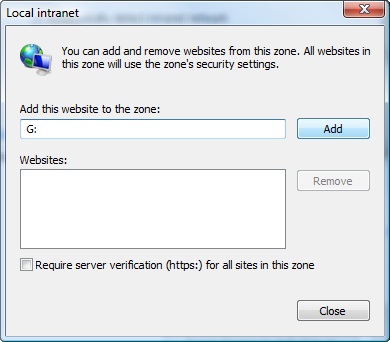 You can safely ignore this message by clicking Run. Alternatively, you can disable this warning completely by adding the network drive to your Local Network Internet Explorer settings, as shown below.